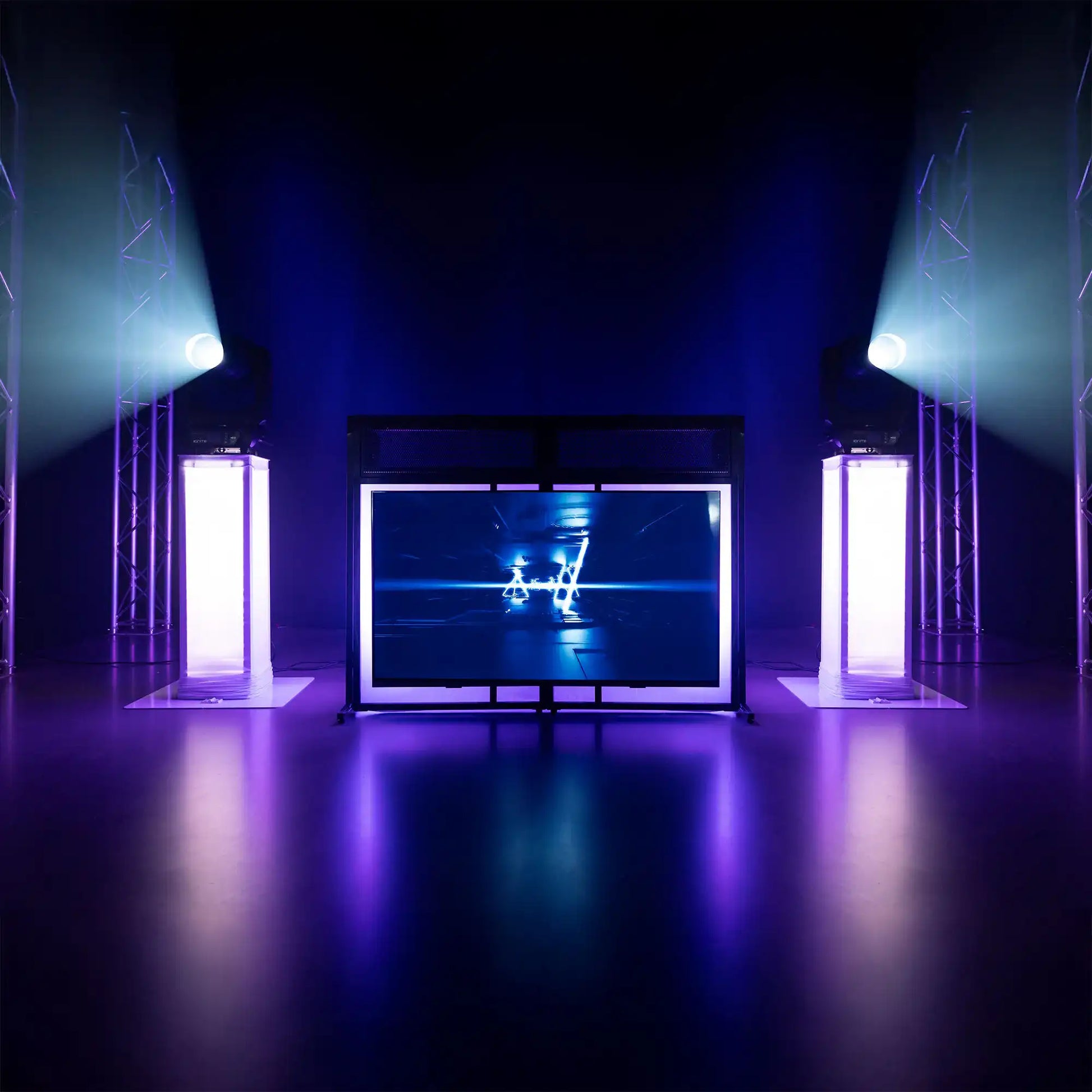 🔹 Support TV avec écran 165 cm intégré 🔹 Habillage élégant avec voiles lycra blancs ou noirs (ignifugés) 🔹 Structure repliable et démontable pour un transport facile 🔹 Montage et démontage assurés par nos soins – zéro stress pour vous ! 🔹 Dimensions compactes : 146 x 73 x 111 cm – idéal pour tous types de salles